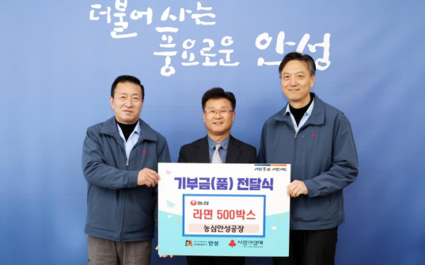 ㈜농심 안성공장은 직원들의 성금으로 마련한 기금으로 자사 제품인 ‘안성탕면’ 500박스(약 700만 원 상당)를 지역 내 취약계층에게 전달했다.