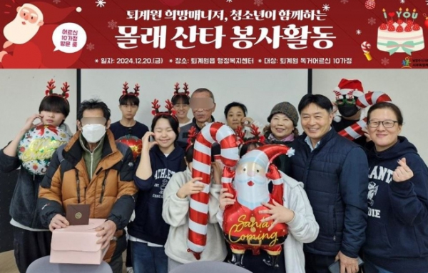 [뉴스Q] 남양주시 사회복지관 서부희망케어센터는 지난 20일 퇴계원 희망매니저(주민봉사자) 7명, 청소년 13명과 함께 ‘몰래 산타 봉사활동’을 진행했다.
